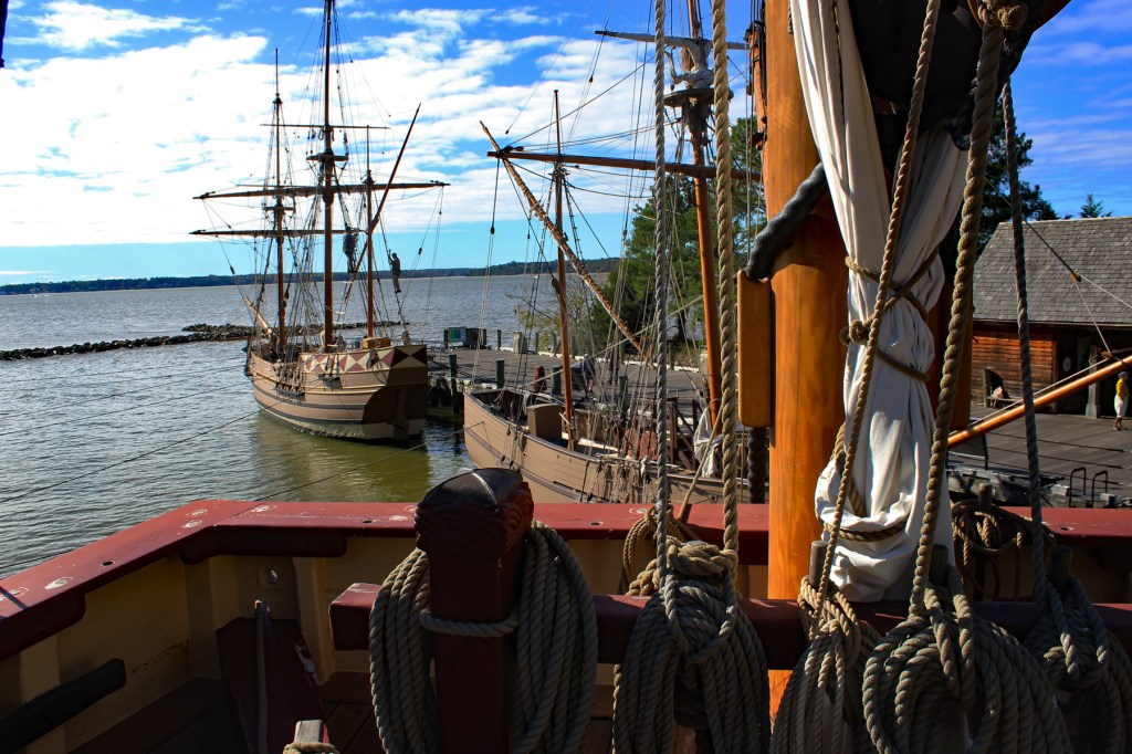 We watched an informative movie about its history, toured the museum, walked through the replicas of the Powhatan Indian village, the English fort, and onto replicas of the three ships that brought 105 colonists to Virginia, making Jamestown the first permanent English settlement in North America in 1607.
